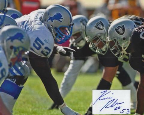 Kevin Glover (Detroit Lions) autographed cut on an 8x10 photo. The photo and signature cut have been professionally laminated together to protect and preserve their quality and condition. By placing this authentic signature cut on the photo, it has significantly increased it's value and desirability! No more looking at a boring index card or piece of paper. Photo is in MINT condition. Please enlarge the photo to view it's resolution since some photos may be of lower resolution. All autographs are 100% guaranteed and come with a certificate of authenticity from www.RKSportsPromotions.com.