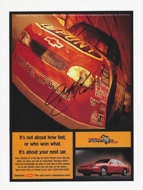 Jeff Gordon (NASCAR) autographed 8x10.5 1999 photo/ad. All autographs are 100% guaranteed and come with a certificate of authenticity from www.RKSportsPromotions.com.