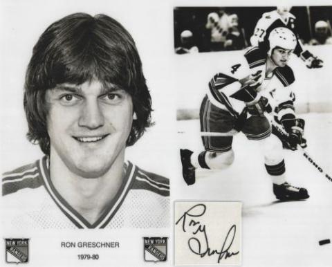 Ron Greschner (NY Rangers) autographed cut on an 8x10 photo. The photo and signature cut have been professionally laminated together to protect and preserve their quality and condition. By placing this authentic signature cut on the photo, it has significantly increased it's value and desirability! No more looking at a boring index card or piece of paper. Photo is in MINT condition. Please enlarge the photo to view it's resolution since some photos may be of lower resolution. All autographs are 100% guaranteed and come with a certificate of authenticity from www.RKSportsPromotions.com.