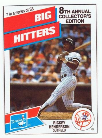 1988 Drake's #7 Rickey Henderson (NY Yankees) in mint condition.