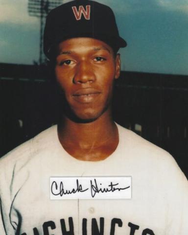 Chuck Hinton (Washington Senators) autographed cut on an 8x10 photo. The photo and signature cut have been professionally laminated together to protect and preserve their quality and condition. By placing this authentic signature cut on the photo, it has significantly increased it's value and desirability! No more looking at a boring index card or piece of paper. Photo is in MINT condition. Please enlarge the photo to view it's resolution since some photos may be of lower resolution. All autographs are 100% guaranteed and come with a certificate of authenticity from www.RKSportsPromotions.com.