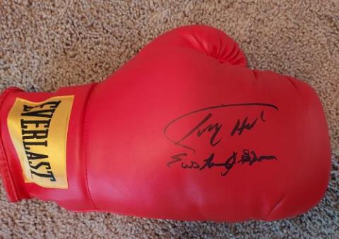 Larry Holmes autographed Everlast 14oz boxing glove. This has been inscribed 'Easton Assassin'. All autographs are 100% guaranteed and come with a certificate of authenticity from www.RKSportsPromotions.com.