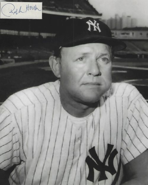 Ralph Houk (NY Yankees) autographed cut on an 8x10 photo. The photo and signature cut have been professionally laminated together to protect and preserve their quality and condition. By placing this authentic signature cut on the photo, it has significantly increased it's value and desirability! No more looking at a boring index card or piece of paper. Photo is in MINT condition. Please enlarge the photo to view it's resolution since some photos may be of lower resolution. All autographs are 100% guaranteed and come with a certificate of authenticity from www.RKSportsPromotions.com.