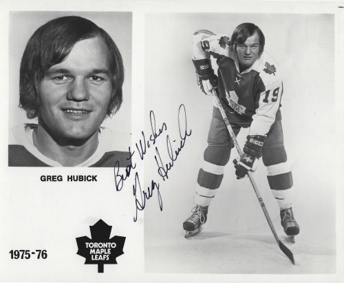EXTREMELY RARE AUTHENTIC HAND SIGNED Greg Hubick autographed 8x10 Toronto Maple Leafs ORIGINAL PRESS photo. Please note: Most of the vintage press photos that we are offering on our website are in great condition. Most are from the 1960's and 1970's. Some photos may have bends, corner wear and in a few cases creases. These are still highly collectible and virtually impossible to find. Many have the press photo year written on the back. All autographs are 100% guaranteed and come with a certificate of authenticity from www.RKSportsPromotions.com.
