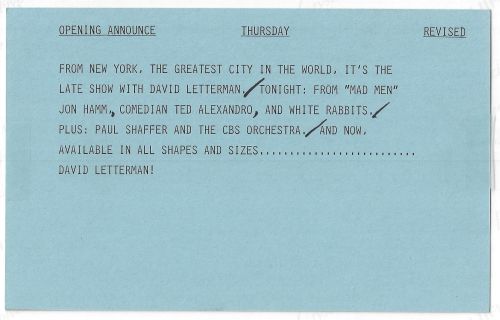 Alan Kalter (Late Night With David Letterman Announcer) autographed 8x10 photo. This comes with the announcement card that he read from on March 1, 2012. All autographs are 100% guaranteed and come with a certificate of authenticity from www.RKSportsPromotions.com.
