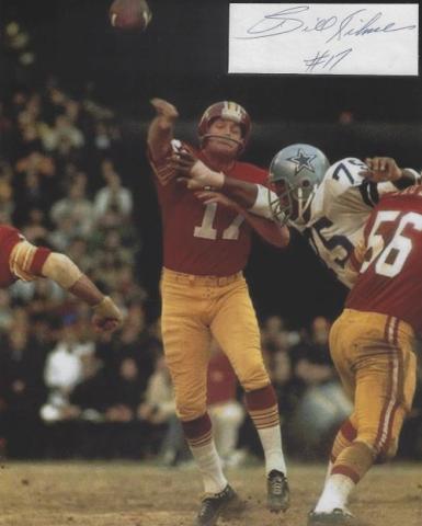 Billy Kilmer (Washington Redskins) autographed cut on an 8x10 photo. The photo and signature cut have been professionally laminated together to protect and preserve their quality and condition. By placing this authentic signature cut on the photo, it has significantly increased it's value and desirability! No more looking at a boring index card or piece of paper. Photo is in MINT condition. Please enlarge the photo to view it's resolution since some photos may be of lower resolution. All autographs are 100% guaranteed and come with a certificate of authenticity from www.RKSportsPromotions.com.