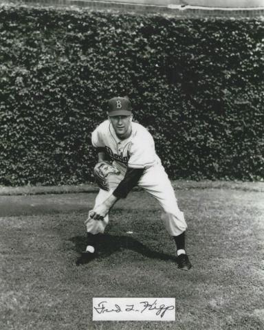 Fred Kipp (Brooklyn Dodgers) autographed cut on an 8x10 photo. The photo and signature cut have been professionally laminated together to protect and preserve their quality and condition. By placing this authentic signature cut on the photo, it has significantly increased it's value and desirability! No more looking at a boring index card or piece of paper. Photo is in MINT condition. Please enlarge the photo to view it's resolution since some photos may be of lower resolution. All autographs are 100% guaranteed and come with a certificate of authenticity from www.RKSportsPromotions.com.