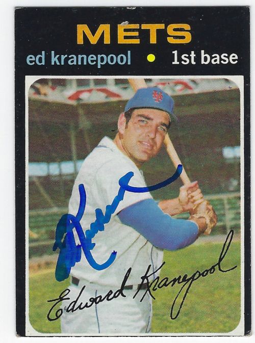 Ed Kranepool (NY Mets) autographed 1971 Topps card. All autographs are 100% guaranteed and come with a certificate of authenticity from www.RKSportsPromotions.com.