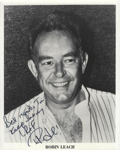 Robin Leach autographed 8x10 photo. Photo has wrinkles down the middle. All autographs are 100% guaranteed and come with a certificate of authenticity from www.RKSportsPromotions.com.