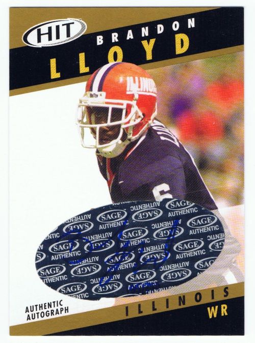 2003 Sage Hit #A26 Brandon Lloyd Gold Autographed Rookie (#185/250) in mint condition. Autograph is tough to see in the scan and is in perfect condition!