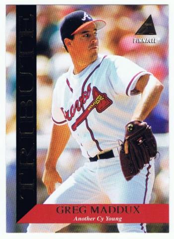 1994 Pinnacle Tribute #TR12 Greg Maddux (Atlanta Braves) in mint condition.