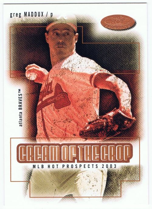 2003 Hot Prospects Cream Of The Crop #7 Greg Maddux (Atlanta Braves) in mint condition.