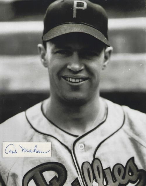 Art Mahan (Philadelphia Phillies) autographed cut on an 8x10 photo. The photo and signature cut have been professionally laminated together to protect and preserve their quality, value and condition. By placing this authentic signature cut on the photo, it has significantly increased it's value and desirablity. Photo is in MINT condition. Please enlarge the photo to view it's resolution since some photos may be of lower resolution. All autographs are 100% guaranteed and come with a certificate of authenticity from www.RKSportsPromotions.com.