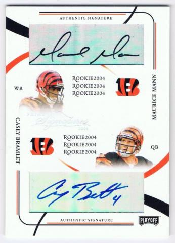 2004 Playoff Prime Signatures #110 Maurice Mann/Casey Bramlet Autographed Rookie (Cincinnati Bengals) #58/199 in mint condition.