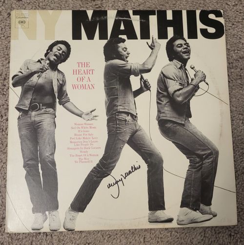 Johnny Mathis 'The Heart Of A Woman' autographed record album. The cover has normal wear for a 1974 cover and the record seems to be in nice shape. All autographs are 100% guaranteed and come with a certificate of authenticity from www.RKSportsPromotions.com.
