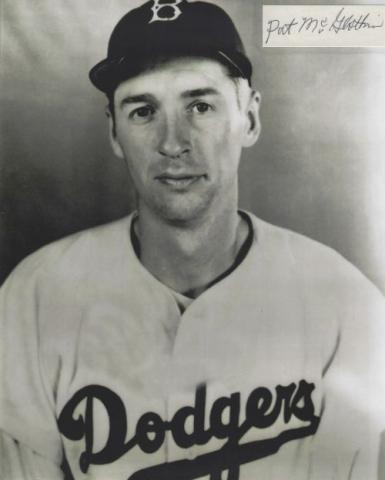 Pat McGlothin (Brooklyn Dodgers) autographed cut on an 8x10 photo. The photo and signature cut have been professionally laminated together to protect and preserve their quality and condition. By placing this authentic signature cut on the photo, it has significantly increased it's value and desirability! No more looking at a boring index card or piece of paper. Photo is in MINT condition. Please enlarge the photo to view it's resolution since some photos may be of lower resolution. All autographs are 100% guaranteed and come with a certificate of authenticity from www.RKSportsPromotions.com.