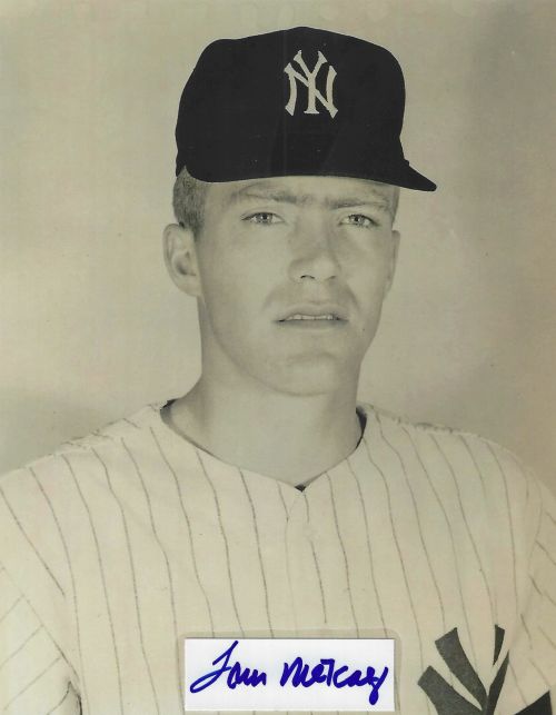 Tom Metcalf (NY Yankees) autographed cut on an 8x10 photo. The photo and signature cut have been professionally laminated together to protect and preserve their quality and condition. By placing this authentic signature cut on the photo, it has significantly increased it's value and desirability! No more looking at a boring index card or piece of paper. Photo is in MINT condition. Please enlarge the photo to view it's resolution since some photos may be of lower resolution. All autographs are 100% guaranteed and come with a certificate of authenticity from www.RKSportsPromotions.com.