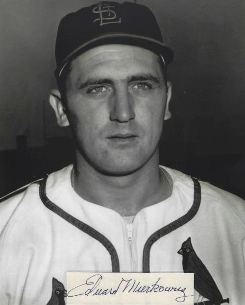 Ed Mierkowicz (St. Louis Cardinals) autographed cut on an 8x10 photo. The photo and signature cut have been professionally laminated together to protect and preserve their quality and condition. By placing this authentic signature cut on the photo, it has significantly increased it's value and desirability! No more looking at a boring index card or piece of paper. Photo is in MINT condition. Please enlarge the photo to view it's resolution since some photos may be of lower resolution. All autographs are 100% guaranteed and come with a certificate of authenticity from www.RKSportsPromotions.com.