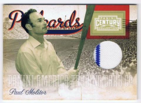 2010 Panini Century Postcards Materials #20 Paul Molitor (Milwaukee Brewers) game used jersey (#226/250) in mint condition.