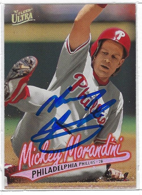 Mickey Morandini (Philadelphia Phillies) autographed card. All autographs are 100% guaranteed and come with a certificate of authenticity from www.RKSportsPromotions.com.