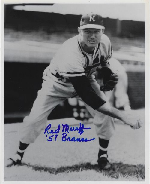 Red Murff (Milwaukee Braves) autographed 8x10 photo. All autographs are 100% guaranteed and come with a certificate of authenticity from www.RKSportsPromotions.com.