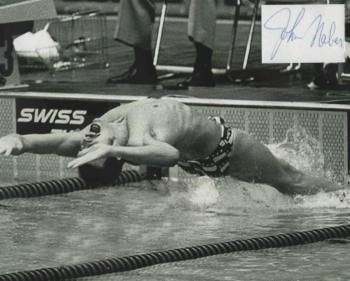 John Naber (Olympics - Swimming) autographed cut on an 8x10 photo. The photo and signature cut have been professionally laminated together to protect and preserve their quality and condition. By placing this authentic signature cut on the photo, it has significantly increased it's value and desirability! No more looking at a boring index card or piece of paper. Photo is in MINT condition. Please enlarge the photo to view it's resolution since some photos may be of lower resolution. All autographs are 100% guaranteed and come with a certificate of authenticity from www.RKSportsPromotions.com.