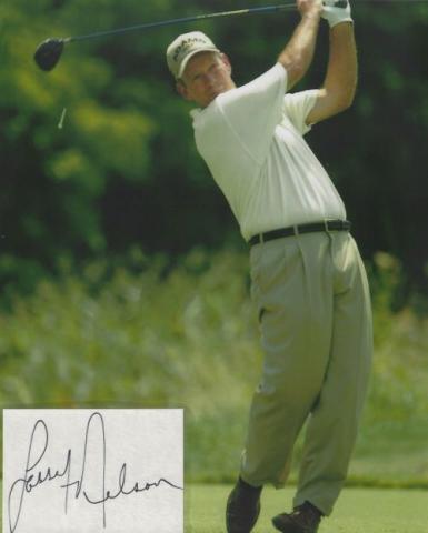 Larry Nelson (Golf) autographed cut on an 8x10 photo. The photo and signature cut have been professionally laminated together to protect and preserve their quality and condition. By placing this authentic signature cut on the photo, it has significantly increased it's value and desirability! No more looking at a boring index card or piece of paper. Photo is in MINT condition. Please enlarge the photo to view it's resolution since some photos may be of lower resolution. All autographs are 100% guaranteed and come with a certificate of authenticity from www.RKSportsPromotions.com.
