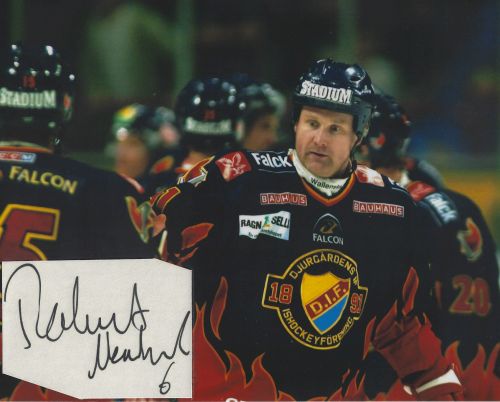 Robert Nordmark (Djurgardens IF) autographed cut on an 8x10 photo. The photo and signature cut have been professionally laminated together to protect and preserve their quality and condition. By placing this authentic signature cut on the photo, it has significantly increased it's value and desirability! No more looking at a boring index card or piece of paper. Photo is in MINT condition. Please enlarge the photo to view it's resolution since some photos may be of lower resolution. All autographs are 100% guaranteed and come with a certificate of authenticity from www.RKSportsPromotions.com.