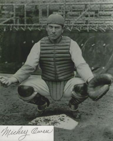Mickey Owen (Brooklyn Dodgers) autographed cut on an 8x10 photo. The photo and signature cut have been professionally laminated together to protect and preserve their quality and condition. By placing this authentic signature cut on the photo, it has significantly increased it's value and desirability! No more looking at a boring index card or piece of paper. Photo is in MINT condition. Please enlarge the photo to view it's resolution since some photos may be of lower resolution. All autographs are 100% guaranteed and come with a certificate of authenticity from www.RKSportsPromotions.com.