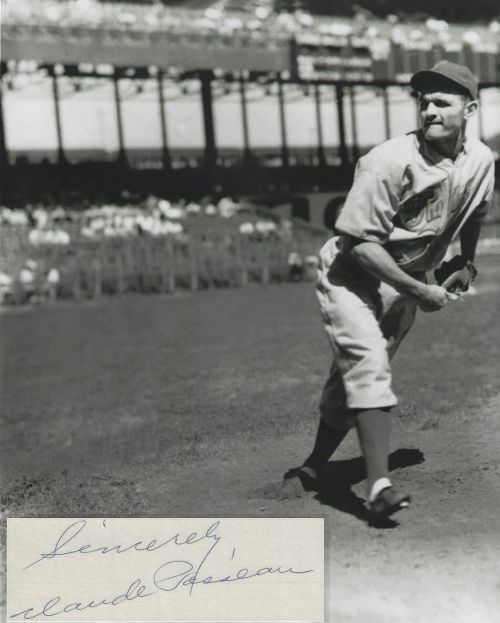 Claude Passeau (Philadelphia Phillies) autographed cut on an 8x10 photo. The photo and signature cut have been professionally laminated together to protect and preserve their quality and condition. By placing this authentic signature cut on the photo, it has significantly increased it's value and desirability! No more looking at a boring index card or piece of paper. Photo is in MINT condition. Please enlarge the photo to view it's resolution since some photos may be of lower resolution. All autographs are 100% guaranteed and come with a certificate of authenticity from www.RKSportsPromotions.com.
