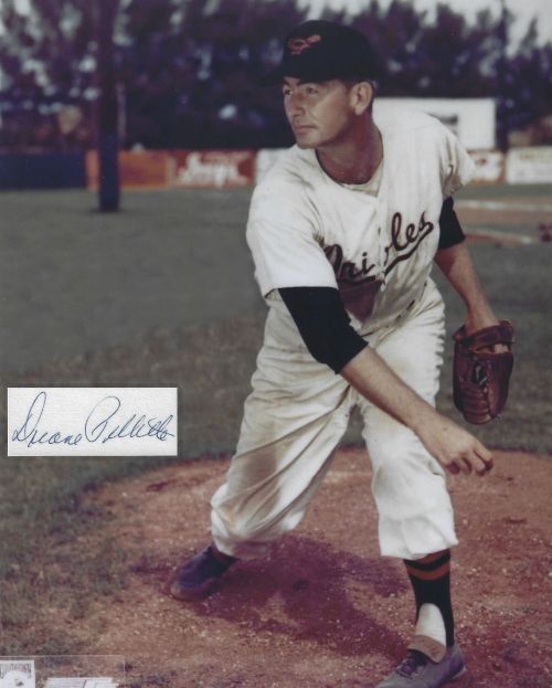 Duane Pillette (Baltimore Orioles) autographed cut on an 8x10 photo. The photo and signature cut have been professionally laminated together to protect and preserve their quality and condition. By placing this authentic signature cut on the photo, it has significantly increased it's value and desirability! No more looking at a boring index card or piece of paper. Photo is in MINT condition. Please enlarge the photo to view it's resolution since some photos may be of lower resolution. All autographs are 100% guaranteed and come with a certificate of authenticity from www.RKSportsPromotions.com.