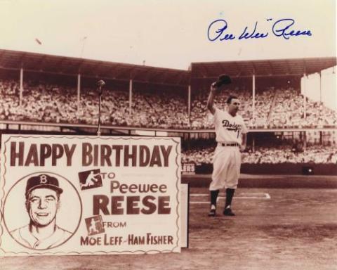 Pee Wee Reese (Brooklyn Dodgers - Hall Of Fame) autographed 8x10 photo. All autographs are 100% guaranteed and come with a certificate of authenticity from www.RKSportsPromotions.com.