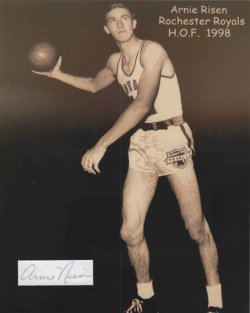 Arnie Risen (Rochester Royals - Hall Of Fame) autographed cut on an 8x10 photo. The photo and signature cut have been professionally laminated together to protect and preserve their quality and condition. By placing this authentic signature cut on the photo, it has significantly increased it's value and desirability! No more looking at a boring index card or piece of paper. Photo is in MINT condition. Please enlarge the photo to view it's resolution since some photos may be of lower resolution. All autographs are 100% guaranteed and come with a certificate of authenticity from www.RKSportsPromotions.com.