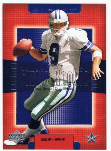 2003 Upperdeck Finite #233 Tony Romo Rookie (Dallas Cowboys) #869/999 in mint condition.