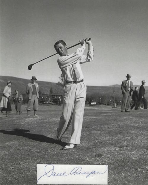 Paul Runyan (Golf) autographed cut on an 8x10 photo. The photo and signature cut have been professionally laminated together to protect and preserve their quality and condition. By placing this authentic signature cut on the photo, it has significantly increased it's value and desirability! No more looking at a boring index card or piece of paper. Photo is in MINT condition. Please enlarge the photo to view it's resolution since some photos may be of lower resolution. All autographs are 100% guaranteed and come with a certificate of authenticity from www.RKSportsPromotions.com.