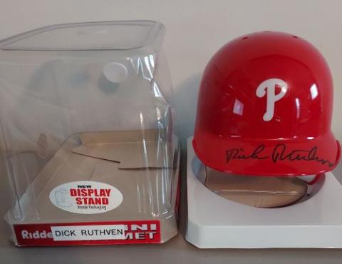 Dick Ruthven (Philadelphia Phillies) autographed Riddell mini helmet. All autographs are 100% guaranteed and come with a certificate of authenticity from www.RKSportsPromotions.com.