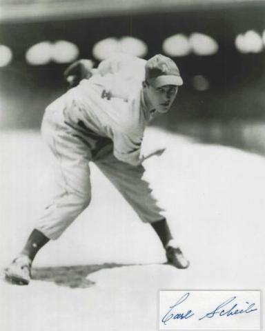 Carl Scheib (Philadelphia Athletics) autographed cut on an 8x10 photo. The photo and signature cut have been professionally laminated together to protect and preserve their quality and condition. By placing this authentic signature cut on the photo, it has significantly increased it's value and desirability! No more looking at a boring index card or piece of paper. Photo is in MINT condition. Please enlarge the photo to view it's resolution since some photos may be of lower resolution. All autographs are 100% guaranteed and come with a certificate of authenticity from www.RKSportsPromotions.com.