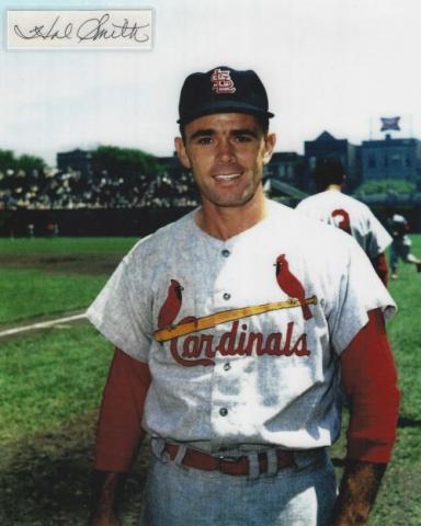 Hal Smith (St. Louis Cardinals) autographed cut on an 8x10 photo. The photo and signature cut have been professionally laminated together to protect and preserve their quality and condition. By placing this authentic signature cut on the photo, it has significantly increased it's value and desirability! No more looking at a boring index card or piece of paper. Photo is in MINT condition. Please enlarge the photo to view it's resolution since some photos may be of lower resolution. All autographs are 100% guaranteed and come with a certificate of authenticity from www.RKSportsPromotions.com.