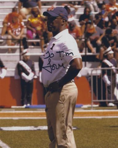 Lovie Smith (Illinois) autographed 8x10 photo. All autographs are 100% guaranteed and come with a certificate of authenticity from www.RKSportsPromotions.com.