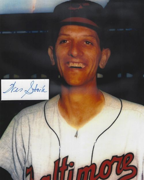 Wes Stock (Baltimore Orioles) autographed cut on an 8x10 photo. The photo and signature cut have been professionally laminated together to protect and preserve their quality and condition. By placing this authentic signature cut on the photo, it has significantly increased it's value and desirability! No more looking at a boring index card or piece of paper. Photo is in MINT condition. Please enlarge the photo to view it's resolution since some photos may be of lower resolution. All autographs are 100% guaranteed and come with a certificate of authenticity from www.RKSportsPromotions.com.