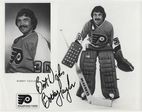 EXTREMELY RARE AUTHENTIC HAND SIGNED Bobby Taylor autographed 8x10 Philadelphia Flyers PRESS photo. Please note: Most of the vintage press photos that we are offering on our website are in great condition. Most are from the 1960's and 1970's. Some photos may have bends, corner wear and in a few cases creases. These are still highly collectible and virtually impossible to find. Many have the press photo year written on the back. All autographs are 100% guaranteed and come with a certificate of authenticity from www.RKSportsPromotions.com.
