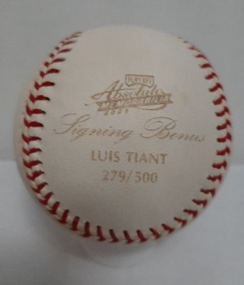 Luis Tiant autographed Rawlings Official Major League Baseball. This item came directly from a 2001 Playoff Absolute Memorabilia box and has a printed certification stamp on it and is serial numbered #279/500.