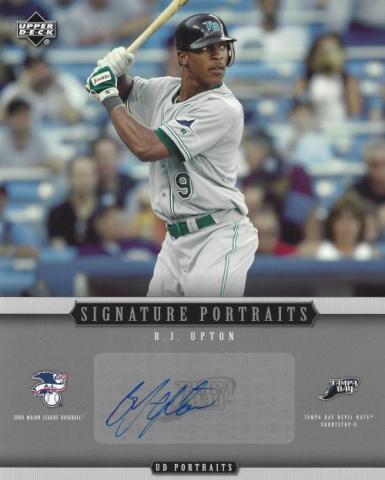 B.J. Upton (Tampa Bay Rays) autographed 8x10 2005 Upper Deck Portraits photo/card. All autographs are 100% guaranteed and this item comes with certification of authenticity from Upper Deck (stated on back of photo/card).
