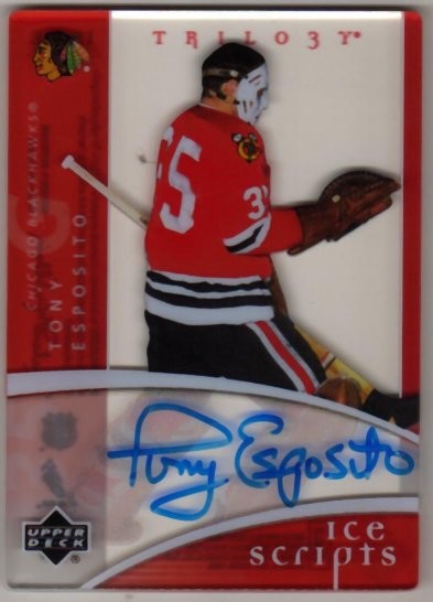 2007-08 Upperdeck Trilogy Ice Scripts #IS-TE Tony Esposito (Chicago Black Hawks) Autographed card in mint condition.