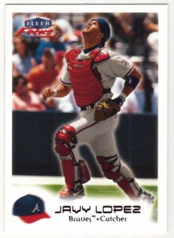 2000 Fleer Focus 1/1 Masterpiece Error Javy Lopez (Atlanta Braves) in mint condition. On the back of this card, next to the card number there is an 'M' indicating that this was supposed to be the 1/1 Masterpiece card. However there is no serial number on the card and an empty space where the serial was supposed to be. This is recognized by Fleer as a true error.