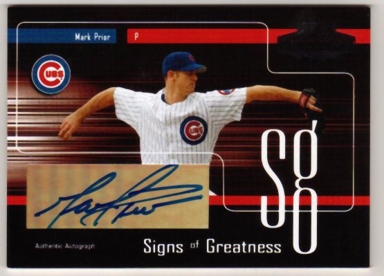 2004 Playoff Honors Signs Of Greatness #SG-1 Mark Prior (Chicago Cubs) #21/25 Autographed card in mint condition.