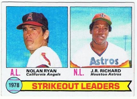 1979 Topps #6 Nolan Ryan / J.R. Richard Strikeout Leaders in nmt condition.