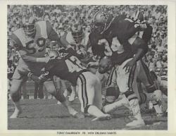 Tony Galbreath (New Orleans Saints) autographed 8.5x11 photo. This item has been professionally laminated for future protection since at one point the photo had been folded into quarters. All autographs are 100% guaranteed and come with a certificate of authenticity from www.RKSportsPromotions.com.