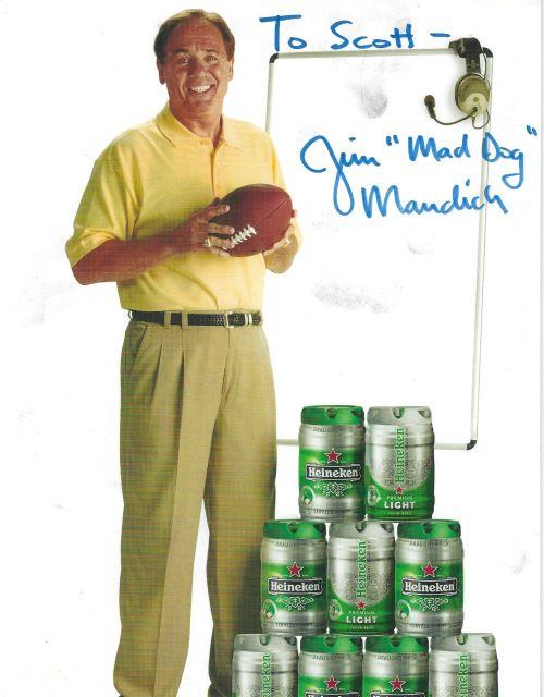 Jim 'Mad Dog' Mandich (Miami Dolphins) autographed 8x10 photo. Photo is on cardboard stock. All autographs are 100% guaranteed and come with a certificate of authenticity from www.RKSportsPromotions.com.