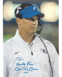 Geoff Collins (Georgia Tech) autographed 8.5x11 photo. Photo has bends throughout most of which are difficult to notice when flat. All autographs are 100% guaranteed and come with a certificate of authenticity from www.RKSportsPromotions.com.